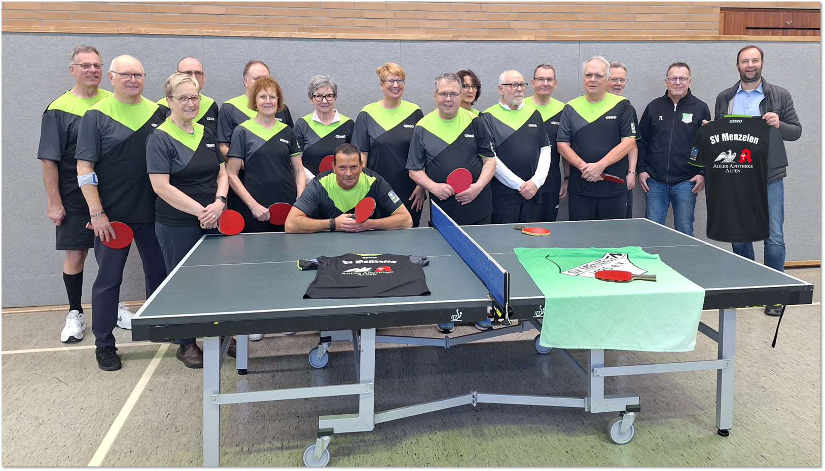 Die Mitglieder der PingPongParkinson-Gruppe des SV Menzelenfreuen sich über die Trikotspende der Adler-Apotheke Alpen,überreicht von Inhaber Thomas Kretzer. Durch die großzügige Spendeim Verbund mit dem KSB Wesel ist es Ihnen nun möglich, an Turnierenund Freundschasspielen mit einheitlichen Trikots teilzunehmen. Der1. Vorsitzende des SV Menzelen, Thomas Lübcke, bedankte sichherzlich bei den Spendern.